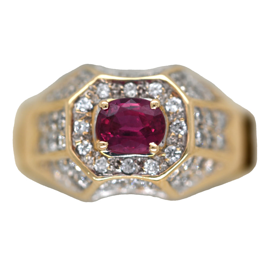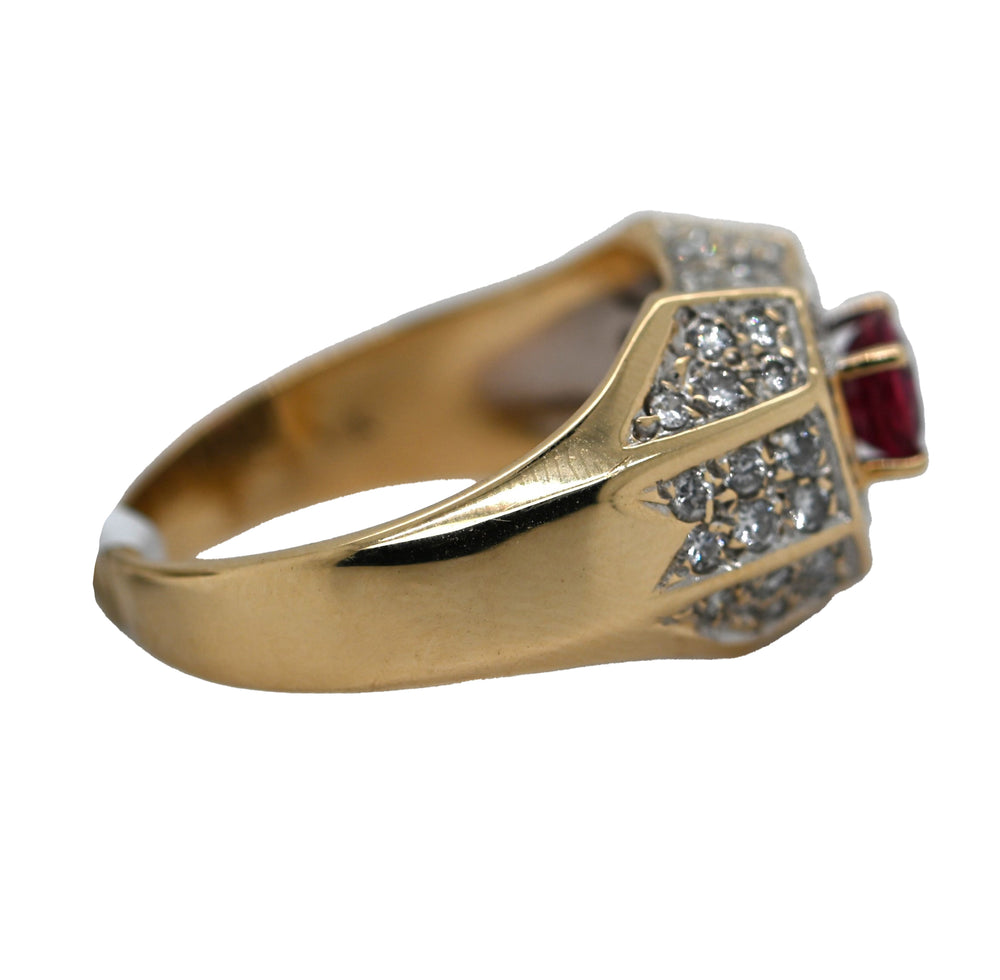 18K Yellow Gold Geometric Cathedral Mount Diamond & Rhodalite Ring