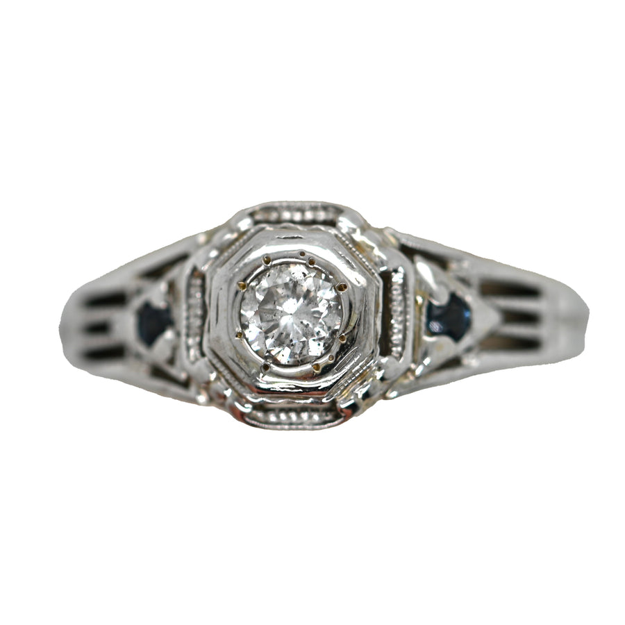 Antique Diamond & Sapphire Filagree Engagement Ring