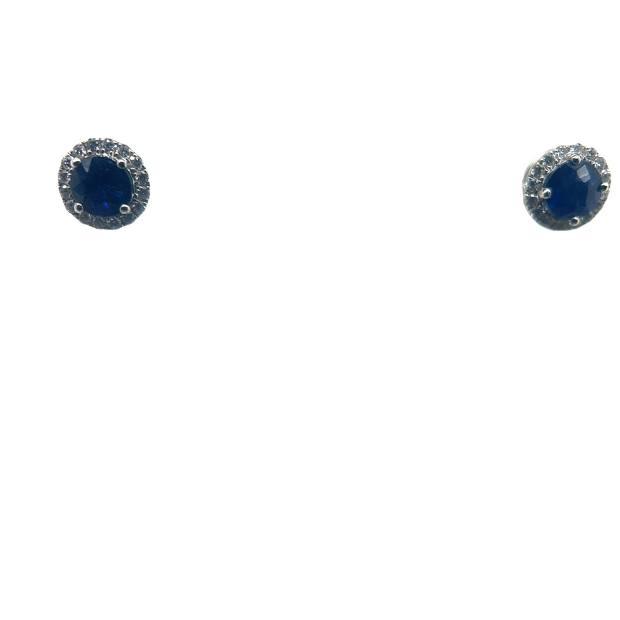14KY, natural blue sapphire (heat)= .55cts, natural diamond halo stud earrings= .15cts