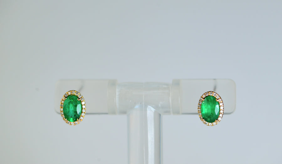 EMERALD STUD ERGS= 0.80CT, WITH DIA HALO=0.12CT
