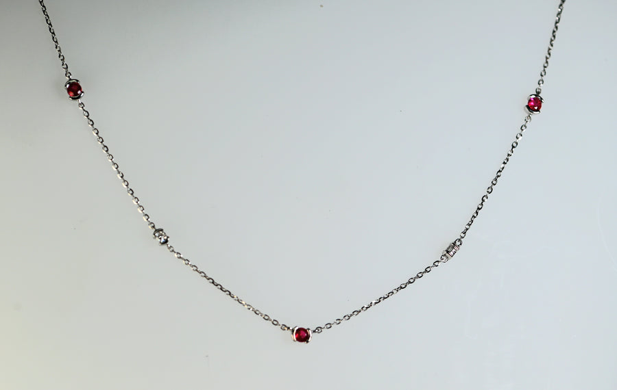 14KW Station Diamond and Ruby necklace, Dia=0.12ctw, Ruby=0.22ctw