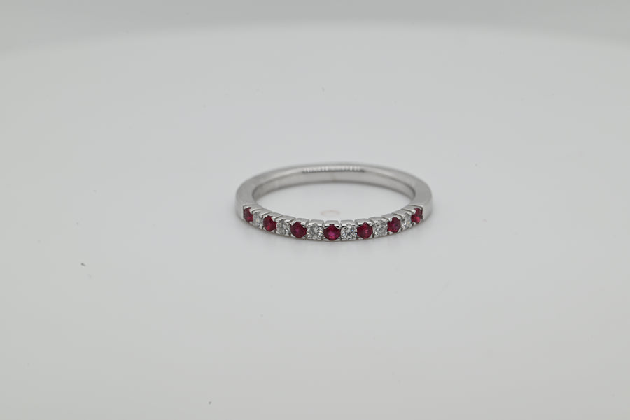 14KW Alternating Diamond and Ruby french prong band Dia=0.15ctw, Ruby=0.20ctw