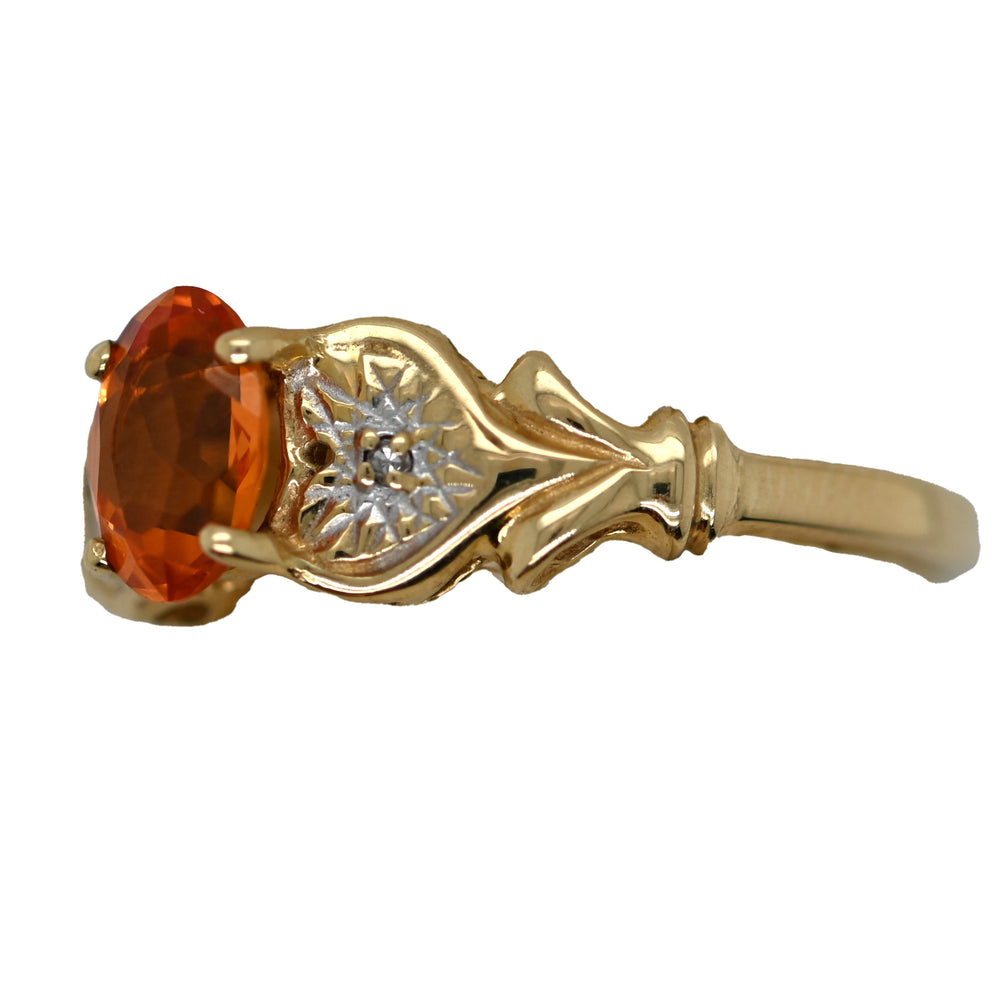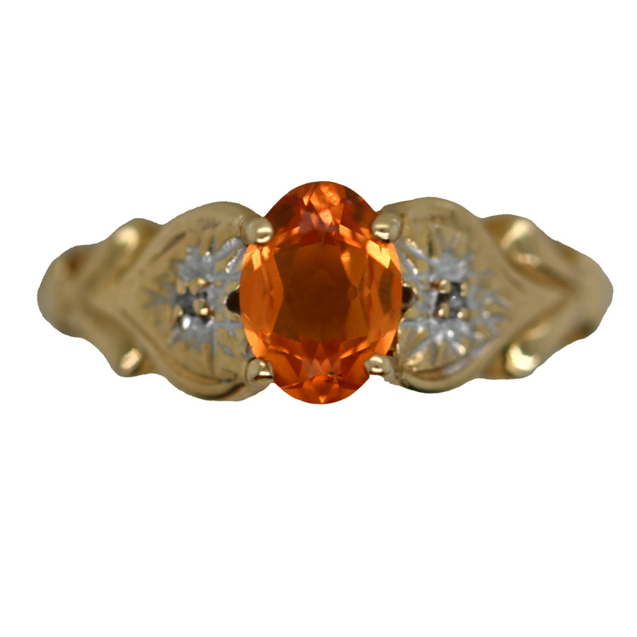 This 10KY ring features a 7x5 citrine stone, accented with natural diamonds.