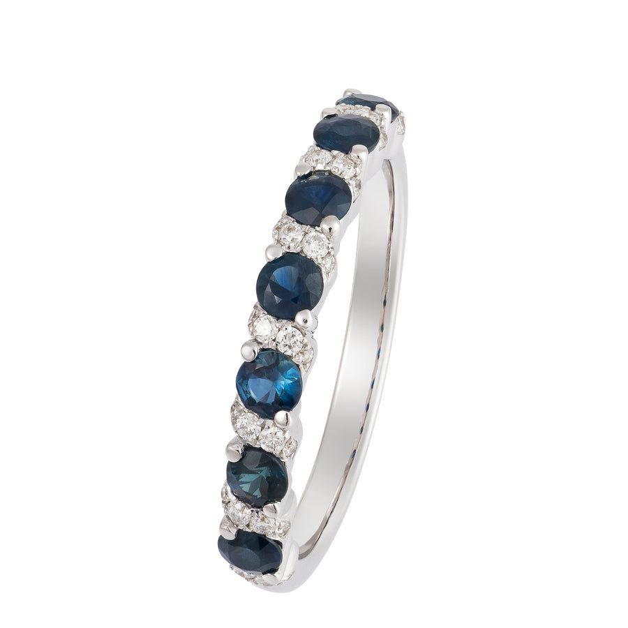 18kw Alternating Diamond and Sapphire band with 7 C Blue sapphires=0.78ctw and 32 dia=0.15ctw