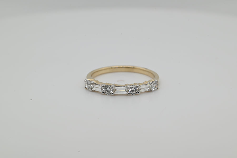 14KY BAND WITH 3 BAGUETTES=0.284CTW, 4 SMALL ROUND DIAMONDS=0.334CTW