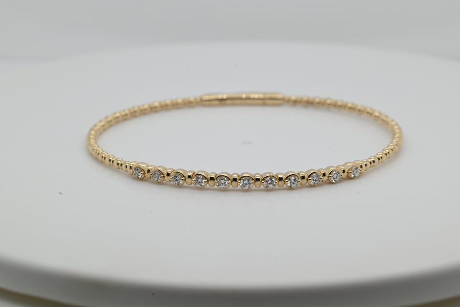 14KY DOTTED BANGLE WITH 11 BZEL SET ROUND DIAMONDS=0.48CTW