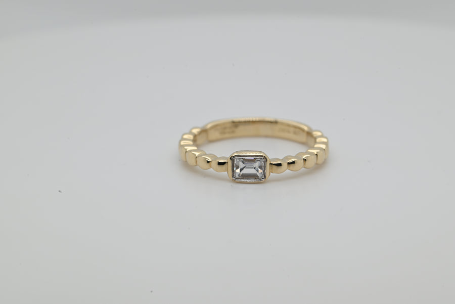 14KY BEZEL SET EMERALD CUT=0.236CT WITH A DOT STYLE BAND