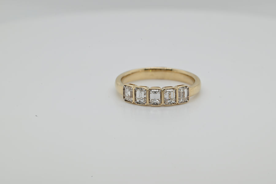 14KY 5 STONE BEZEL SET EMERALD CUT DIAMONDS=0.949