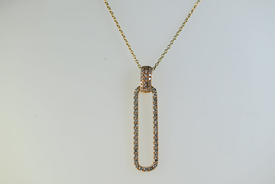 14KY DIAMOND PAPERCLIP SHAPED PENDANT PAVE SET W/ PAVE SET BAIL=0.41CTW .18: ADJ CHAIN( OUR CHAIN)
