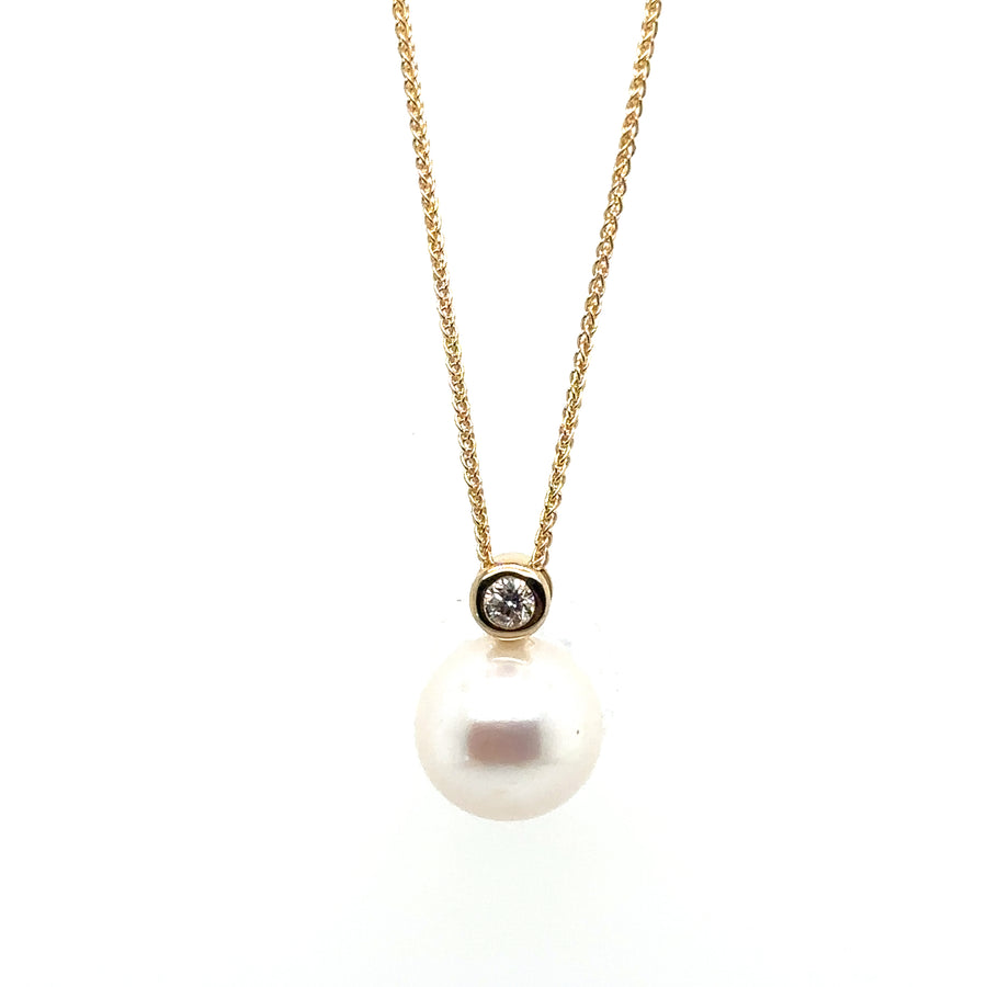 18KY FW pearl 9-10mm 1RBC nat dia= .08ct .30grams