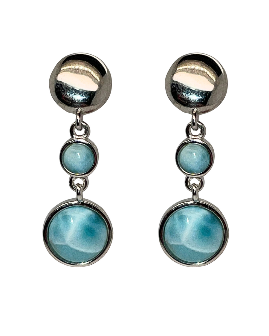 SS Drop down earrings, 2 larimar for each earring in a bezel set, Tension back
