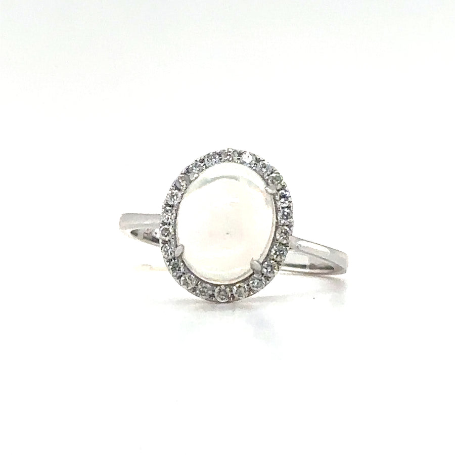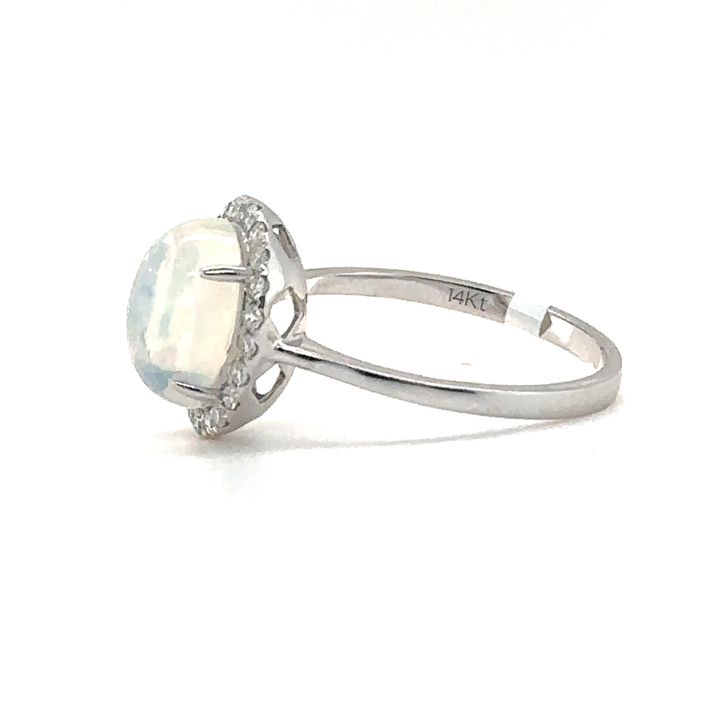 14KW natural 1.50cts opal, .25cts nat diamond oval halo solitaire ring