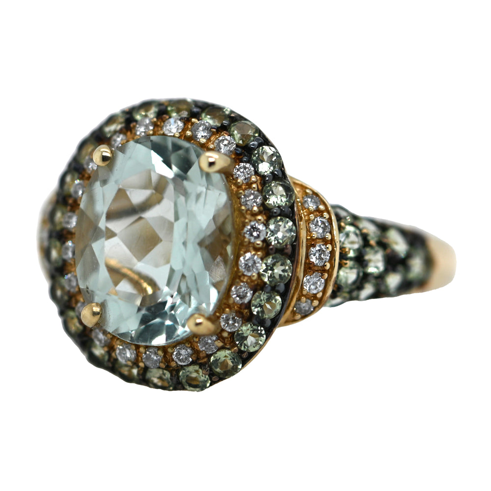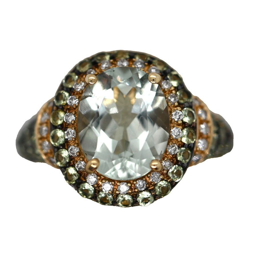 Yellow Gold Green Quartz Peridot & Diamond Ring